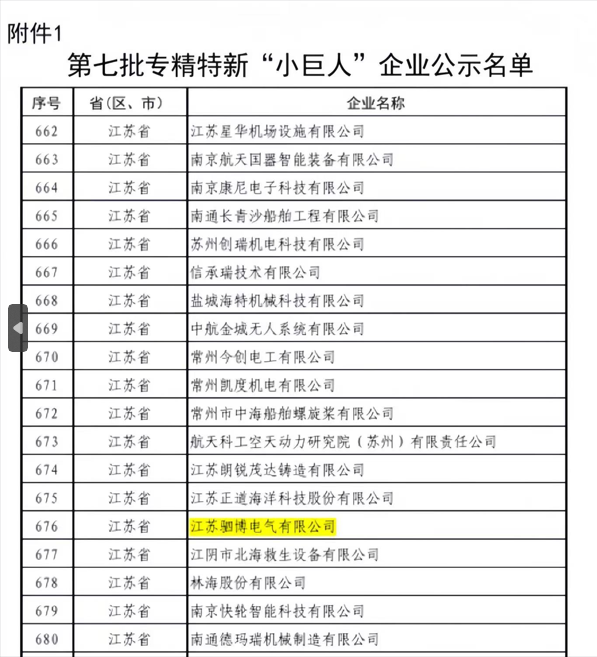 近日,江苏省工业和信息化厅公示了工信部第七批专精特新“小巨人”企业名单,驷博集团旗下江苏驷博电气有限公司凭借其在船舶电气领域的技术创新实力与市场表现,成功入选。